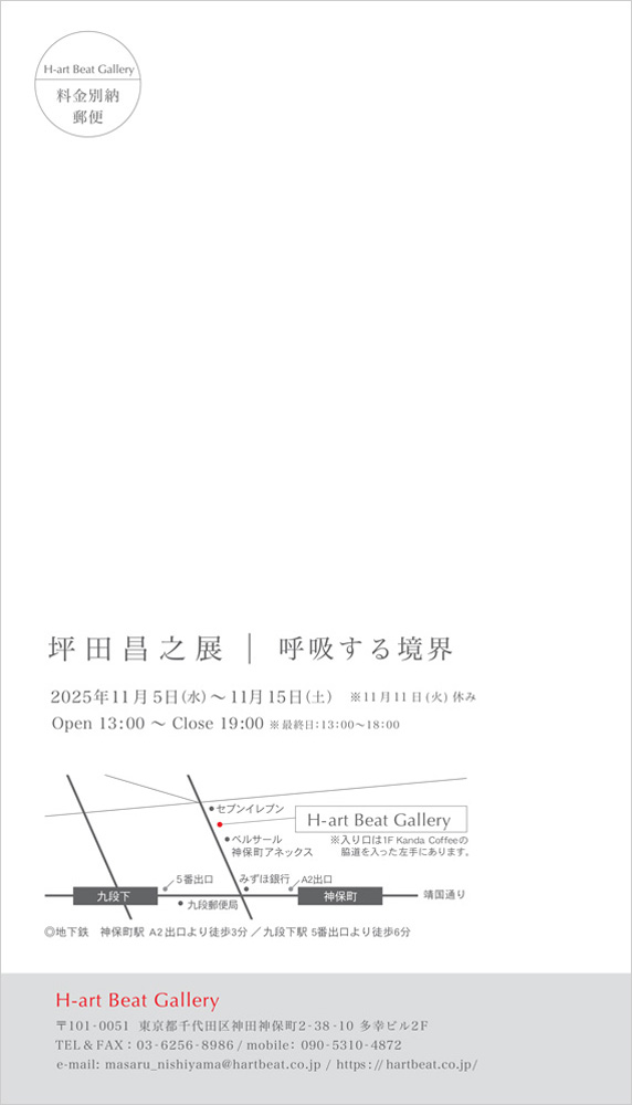 Solo Exhibition of Masayuki TSUBOTA - "Breathing Boundaries" will be held. November 5 to 15, 2025 (Closed on November 11) 13:00 - 19:00 / 13:00 - 18:00 on Nov. 15 Please kindly find Press Release for the further details on the following PDF. Press_Release_Masayuki_TSUBOTA_2025_EN.pdf