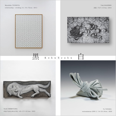 H-art Beat Galleryはグループ展 「黑 Kokubyaku 白 」 を開催します。 会期:2026年3月19日(木)〜3月28日(土) 13:00~19:00 *最終日 13:00~18:00 出展作家:坪田政彦、下山直紀、ましもゆき、田中悠